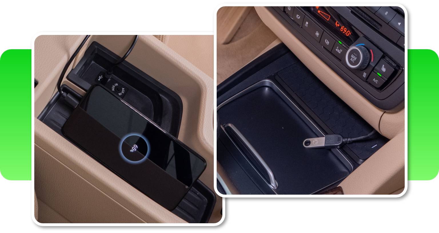 Our BMW Android Auto upgrade comes with a USB port. It lets you charge your smartphone on longer drives, or can also be used for playing videos and music files on your iDrive Screen from a USB thumb drive. What's more, it's important for future software updates. So, if you won't be using it to enjoy multimedia - make sure to place it in an accessible location.