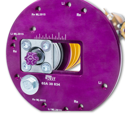 Using the Nordschleife as it's testing grounds and the 7-post rig, KW developed it's 3-way Clubsport coilover kit. Wheel loads, vehicle weight and chassis reinforcements (increased body stiffness) can all be taken into consideration with adjustment capabilities of the 3-way Clubsport. Similar to KW Competition 3-way coilovers, low-speed and high-speed compression adjustment is done via KW's patented two-valve control on the reservoir.
